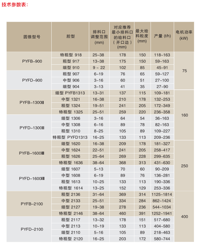 有复合圆锥破碎机的详细技术参数吗?